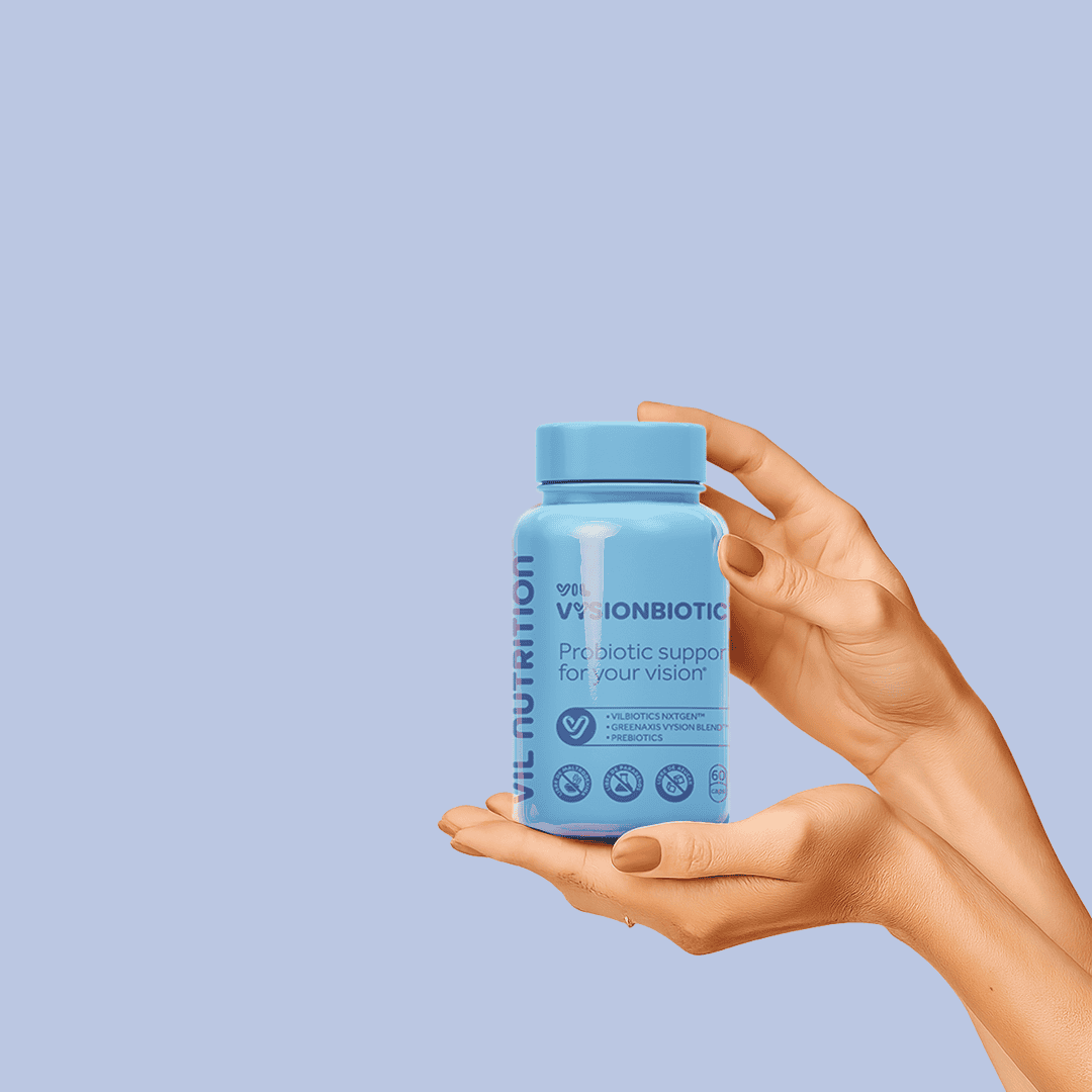 VIL VysionBiotic es un suplemento en cápsulas veganas diseñado para proteger la salud ocular, prevenir el deterioro visual asociado al envejecimiento y reducir el cansancio ocular causado por pantallas y factores ambientales. Su fórmula avanzada combina los probióticos especializados VILBIOTICS NXTGEN™, prebióticos, y la mezcla antioxidante y protectora GREENAXIS VISYON BLEND™, con compuestos clínicamente reconocidos para el cuidado de los ojos.
